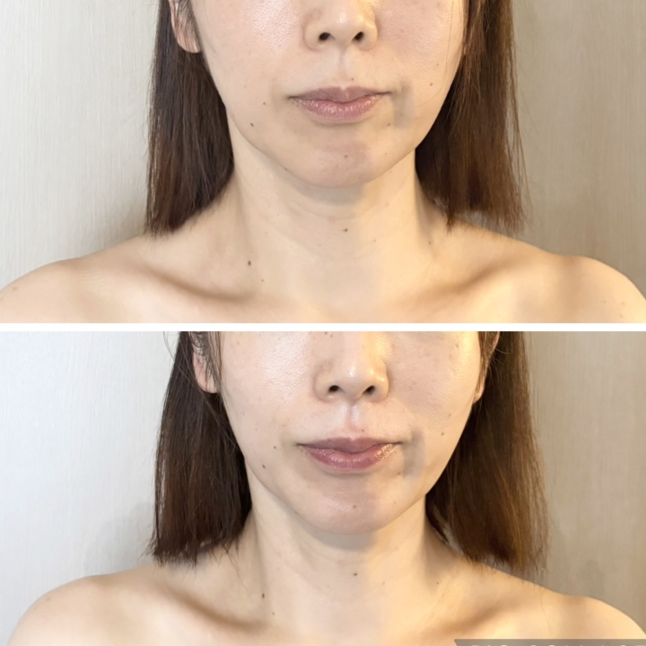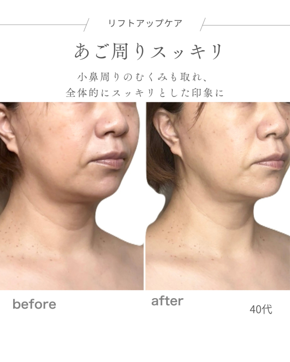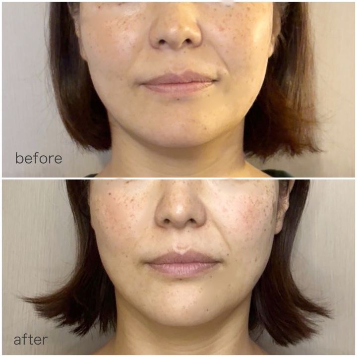 フェイスラインの変化だけではなく、お肌のハリや透明感もアップしました。