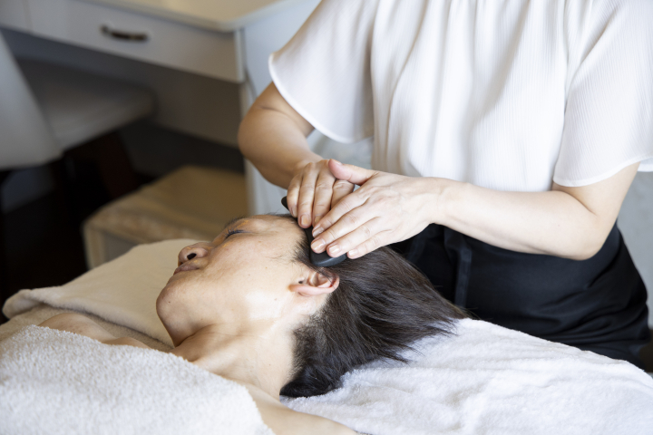 <遠赤外線の熱>を利用して頭皮から引き上げます。